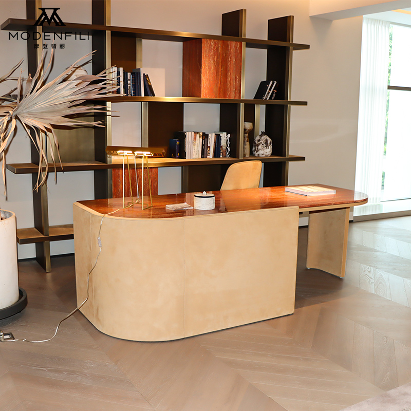 Transform your workspace with the V2223S10 modern executive desk, designed to combine functionality with a touch of luxury. This desk features a striking marble top that adds a sense of elegance and sophistication to your office or home office. The desk's curved design and sleek lines contribute to a contemporary aesthetic that complements modern interiors.