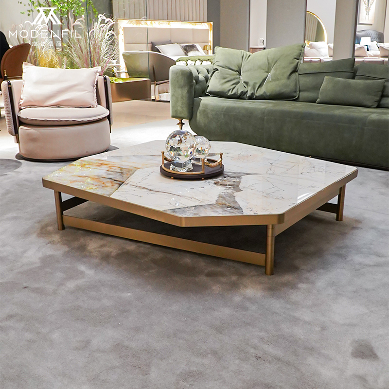 MODENFILI SM016-3 Hexagonal Marble Coffee Table - Luxury Living Room Centerpiece