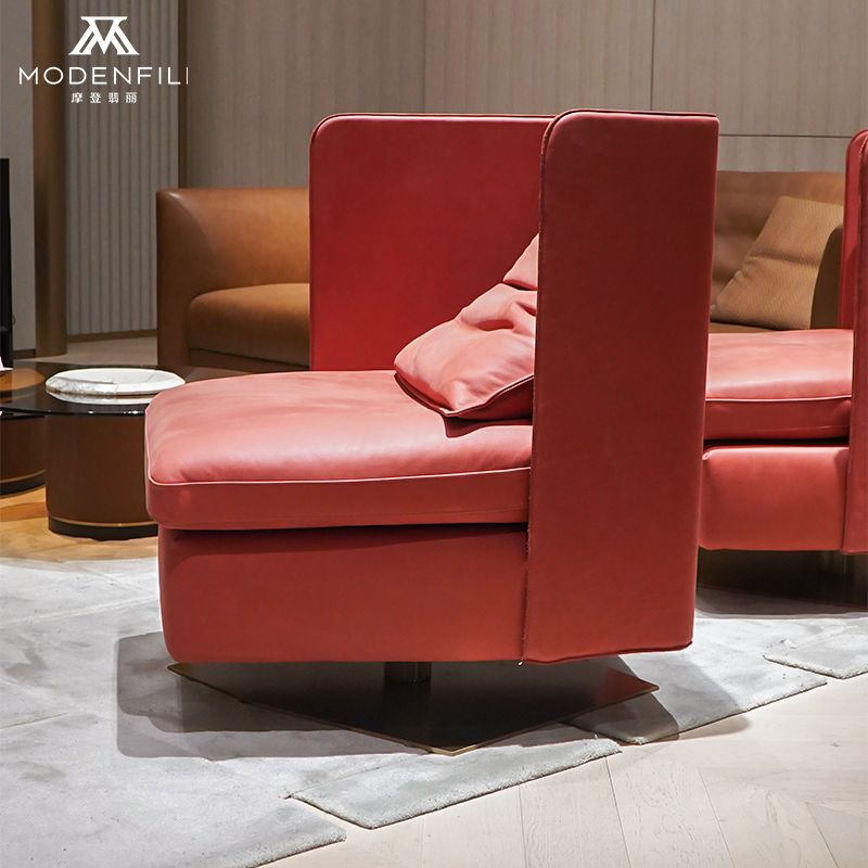 Add a bold statement to your living room with the MODENFILI SM007-2 modern red swivel chair. This chair features a vibrant red upholstery that brings energy and warmth to any interior, complemented by a sleek, contemporary design that includes a comfortable cushioned seat and a supportive backrest. The SM007-2 model is equipped with a swivel base, allowing for easy movement and making it perfect for lounging, reading, or simply relaxing at home. Its eye-catching color and stylish design make it an ideal choice for those looking to enhance the aesthetic of their living area. Experience the perfect blend of comfort and design with the MODENFILI SM007-2 swivel chair.