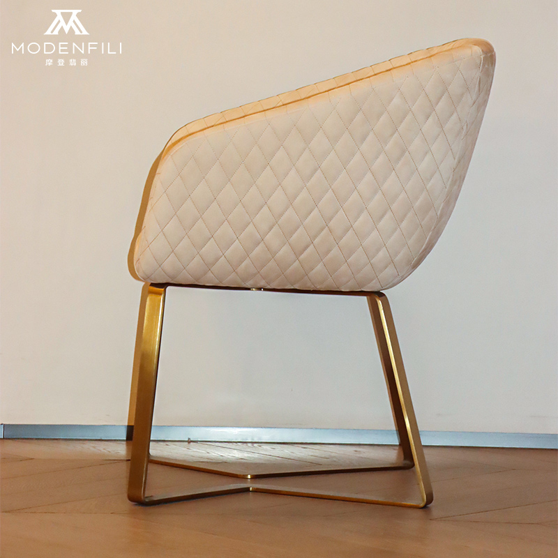 Elevate your dining experience with the MODENFILI V2202D5B modern dining chair, designed to offer both comfort and style. This chair features a luxurious cream-colored upholstery with a diamond tufted design that adds a touch of sophistication to your dining room. The V2202D5B model is crafted with a sturdy, gold-finished metal frame that ensures stability and complements the elegant upholstery. Perfect for those seeking a blend of contemporary design and everyday comfort, this dining chair is an ideal choice for enhancing the aesthetic of your dining space. Experience the perfect fusion of luxury and functionality with the MODENFILI V2202D5B dining chair.