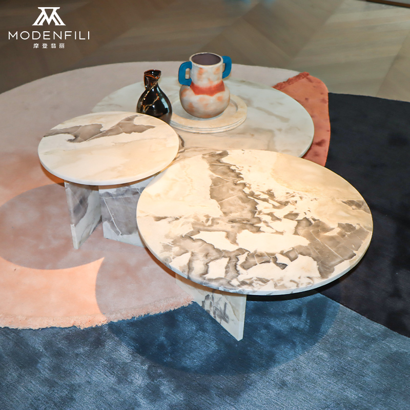 The MODENFILI V2203H3 is a luxurious nested round coffee table set that brings a touch of sophistication to any living space. Crafted with an exquisite marble top, each table in the set showcases the unique veining and patterns that only natural stone can offer, providing an element of elegance and timelessness. The set includes two tables, allowing for versatile use in various room layouts and accommodating different entertaining needs. The tables' sturdy bases, finished in a rich, dark hue, provide a solid foundation and contrast beautifully with the lightness of the marble. The V2203H3 is not just functional; it's a statement piece that reflects your refined taste and appreciation for high-quality materials and craftsmanship. Whether you're using the tables to display decorative items, serve refreshments, or simply as a focal point in your living room, this set is designed to impress and provide years of enjoyment. The MODENFILI V2203H3 is perfect for those who seek to create a warm, inviting atmosphere in their home while enjoying the durability and beauty of marble furniture.