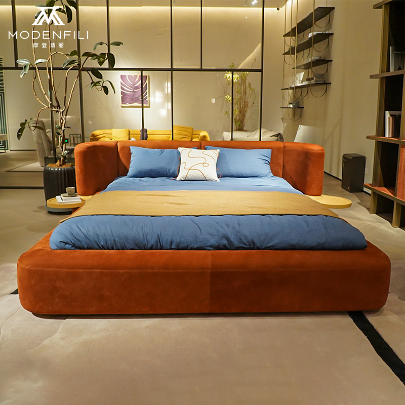 The MODENFILI V2233B2 daybed is a striking piece of furniture that brings a burst of color and comfort to any living space. This daybed features a bold orange velvet upholstery that is both inviting and stylish, perfect for adding a pop of color to your bedroom or guest room. The plush cushions and soft fabric create a cozy atmosphere that beckons you to relax and unwind. The V2233B2 is designed with a modern aesthetic in mind, featuring clean lines and a minimalist silhouette that complements contemporary decor. Its low-profile design and rounded edges add a touch of sophistication, while the sturdy frame ensures durability and stability. This daybed is not just a place to rest; it's a versatile piece that can be used as a bed, a lounger, or even a seating area in a home office. The V2233B2 is perfect for those who appreciate modern design and wish to incorporate vibrant, functional elements into their home decor. Its combination of comfort, style, and versatility makes it an essential piece for any home. Whether you're looking to create a cozy reading nook or a stylish guest room, the MODENFILI V2233B2 daybed offers a luxurious and comfortable experience that is both stylish and restful.