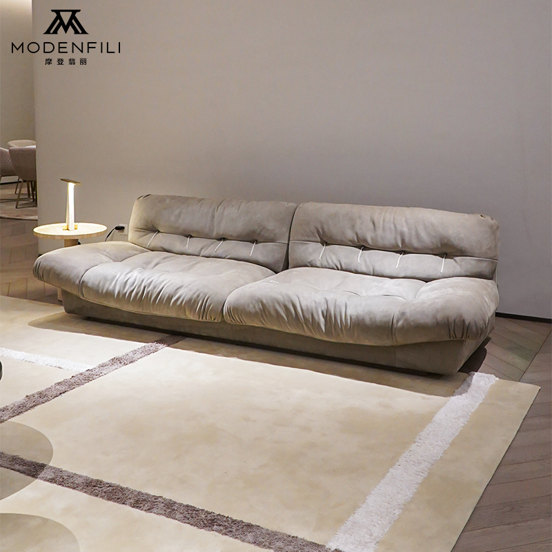 The MODENFILI V2212 sectional sofa is a perfect blend of modern design and luxurious comfort, making it an ideal centerpiece for any contemporary living space. This beige sofa features a plush fabric upholstery that adds a touch of sophistication and warmth to your decor, while its generous cushions provide the ultimate in relaxation. The V2212 is designed with a sleek silhouette that complements minimalist and modern interiors, featuring clean lines and a minimalist aesthetic that is both stylish and timeless. The sofa's sturdy frame, crafted from high-quality materials, ensures durability and stability, while the soft fabric upholstery adds a touch of luxury to the overall design. This sectional sofa is not just a place to sit; it's a statement piece that reflects your refined taste and appreciation for quality craftsmanship. Whether you're looking to create a cozy family room or a stylish lounge area, the MODENFILI V2212 sofa offers a comfortable and inviting experience that is both stylish and restful. Its combination of comfort, style, and functionality makes it an essential piece for any home aspiring to achieve a high-end, contemporary look. The V2212 is designed for those who value both form and function in their furniture choices, offering a sophisticated and modern look that elevates any room. Whether you're hosting a social gathering or enjoying a quiet evening at home, this sofa provides both style and utility, making it an essential addition to any discerning homeowner's collection.