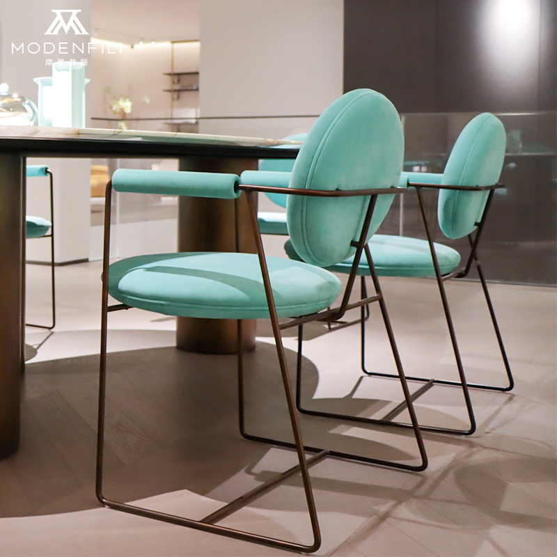 The MODENFILI V2215D5 dining chair is a perfect addition to any contemporary dining space, offering a blend of modern style and comfort. This aqua blue chair features a vibrant color that adds a refreshing touch to your decor, while its plush cushioning ensures a comfortable seating experience. The V2215D5 is designed with a sleek silhouette that complements minimalist and modern interiors, showcasing clean lines and a minimalist aesthetic that is both stylish and timeless. The chair's sturdy metal frame, finished in a dark hue, provides a solid foundation and adds an industrial chic contrast to the soft upholstery. The combination of metal and fabric creates a harmonious balance, making it suitable for various settings, from a cozy breakfast nook to a formal dining room. This dining chair is not just a piece of furniture; it's a statement piece that reflects your refined taste and appreciation for quality craftsmanship. Whether you're looking to create a vibrant dining area or a stylish seating arrangement in your kitchen, the MODENFILI V2215D5 chair offers a comfortable and inviting experience that is both stylish and restful. Its combination of comfort, style, and functionality makes it an essential piece for any home aspiring to achieve a high-end, contemporary look. The V2215D5 is designed for those who value both form and function in their furniture choices, offering a sophisticated and modern look that elevates any room. Whether you're hosting a social gathering or enjoying a quiet dinner at home, this chair provides both style and utility, making it an essential addition to any discerning homeowner's collection.